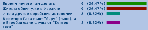 | Первое место: Ни там ни тут евреи больше не живут (ответили Antaran, елена, Eveline, Сионист, Вадим и марина) |