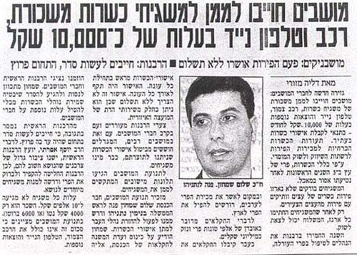 мобильный телефон (всё это в общую стоимость 10.000 новых шекелей)