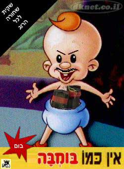 Чёрный юмор израильской реалии. Пародия на рекламу бамбы. Надпись гласит: